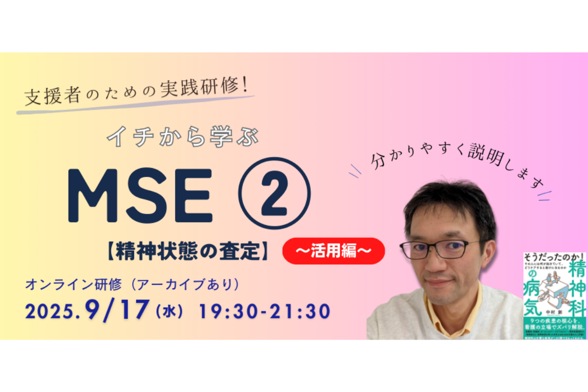 今回は、統合失調症、双極症、神経発達症など、異なる診断におけるMSEでの判断方法から実践計画の立て方までをご紹介します。