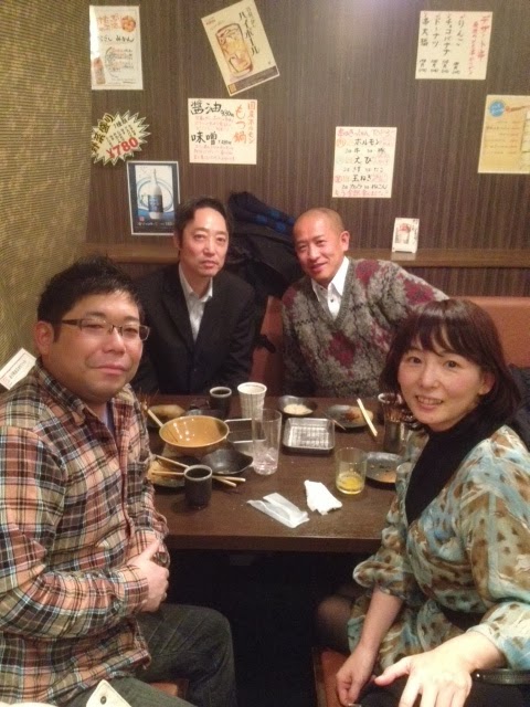 お客さんが来られました 2014/01/20 ・平成26年1月11日 昨年のWRAP研修でお会いした柳瀬一正さんが大阪に来られたので再会しました。 柳瀬さんは、東京都立松沢病院で社会復帰支援室相談係長(課長補佐)をされています。 みのりからは所長の進、所長補佐の藤田、管理者の山口が参加し、お食事を共にしながら精神科医療などについて意見交換などを熱くさせていただきました。 柳瀬さんわざわざお越しいただきありがとうございました。 今後ともよろしくお願いいたします。