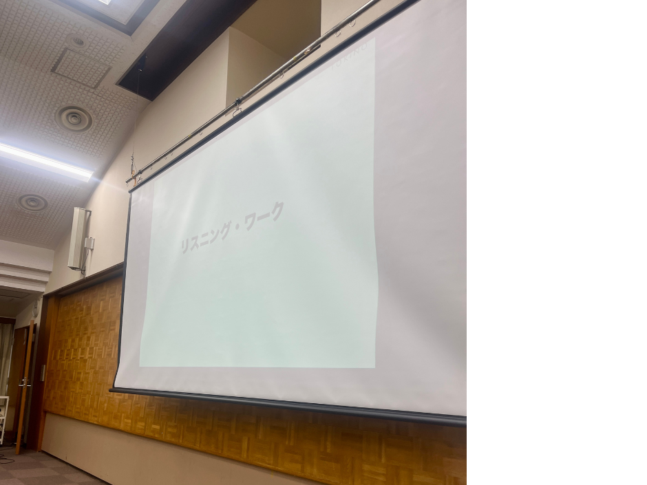 講義では、「話す」と「聞く」を分けて行うリスニング・ワークを取り入れました。このワークでは、普段あまり意識しない「聞くこと」にフォーカスし、話すことに向き合う内容です。