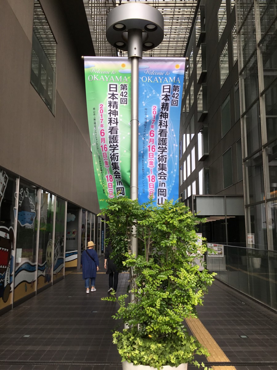 第42回 日本精神科看護技術学術集会in岡山に参加しました。 2017/06/21 6月16日~18日に岡山県で開催されました第42回 日本精神科看護技術学術集会に横浜所長の松井洋子、奈良所長の小瀬古伸幸、大阪の精神科認定看護師の木下将太朗、崔明玉が参加しました。 小瀬古は研究発表の座長を務めさせていただきました。様々な実践的な研究発表から日々の実践を振り返ることができました。 今回の学びを訪問看護に反映していきたいと考えております。