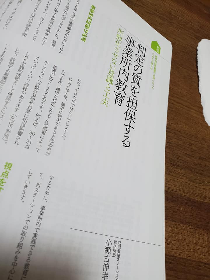 医学書院から刊行されている「訪問看護と介護」9月号にGAFに関する判定の質を担保する事業所内教育について統括所長の小瀬古が書きました。